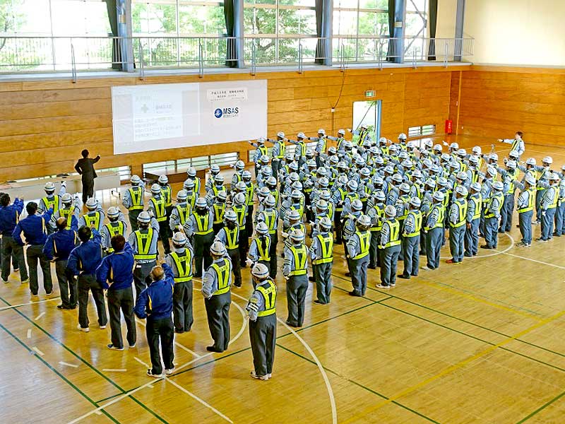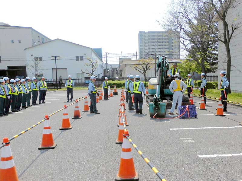 警備業法に準じて行う現任教育は、社内プロジェクトチームを組織し、実施するカリキュラムを立案します。「何をどう教えていくか」を半年近く吟味して、会場に工事用重機を持ち込むなど、現場に即した教育に重点を置いて行います。更なるスキルアップの大切な機会と捉え、道路交通法などの改正等、理解が必要な案件も多く、基本の再習得が警備には不可欠です。